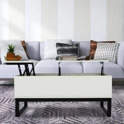 41.30 in. L Coffee Table with Steel Legs, Storage Space and Liftable Table Top, 15 Min. Quick Assemble, White by Aoibox