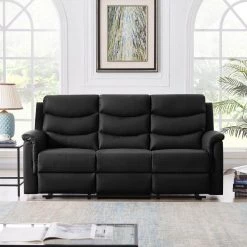 77.5 in. W Round Arm Faux Leather 3-Seater Straight Motion Sofa in Black by Aoibox